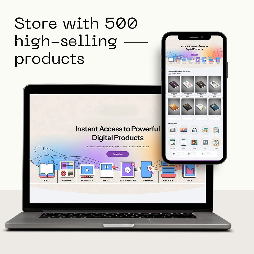Imagine walking into a business that’s already stocked with 500 of the hottest, in-demand digital products — ebooks, templates, guides, and more — all ready to sell from day one.